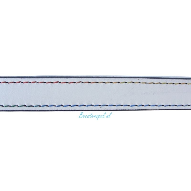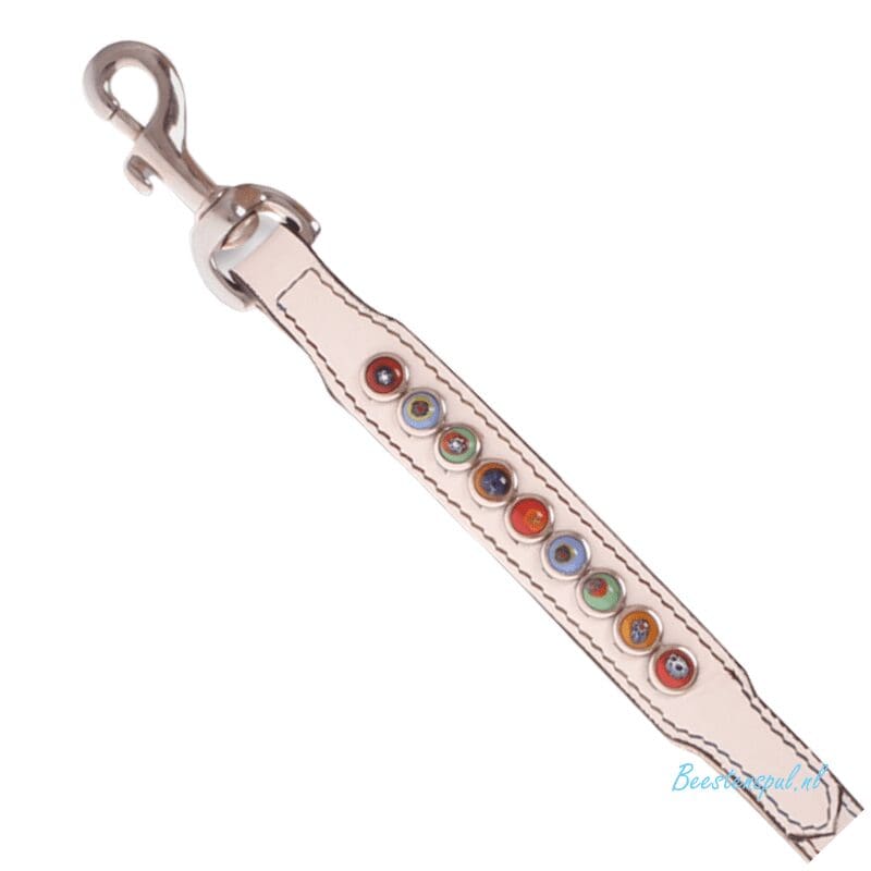 Stevige lijn, bij de musketon versierd met kleurige steentjes in een zilverkleurige setting.