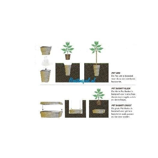 De basket kan worden begraven in uw tuin of een andere toegestane plek en zal na verloop van tijd organisch worden afgebroken en opgenomen in de aarde.
