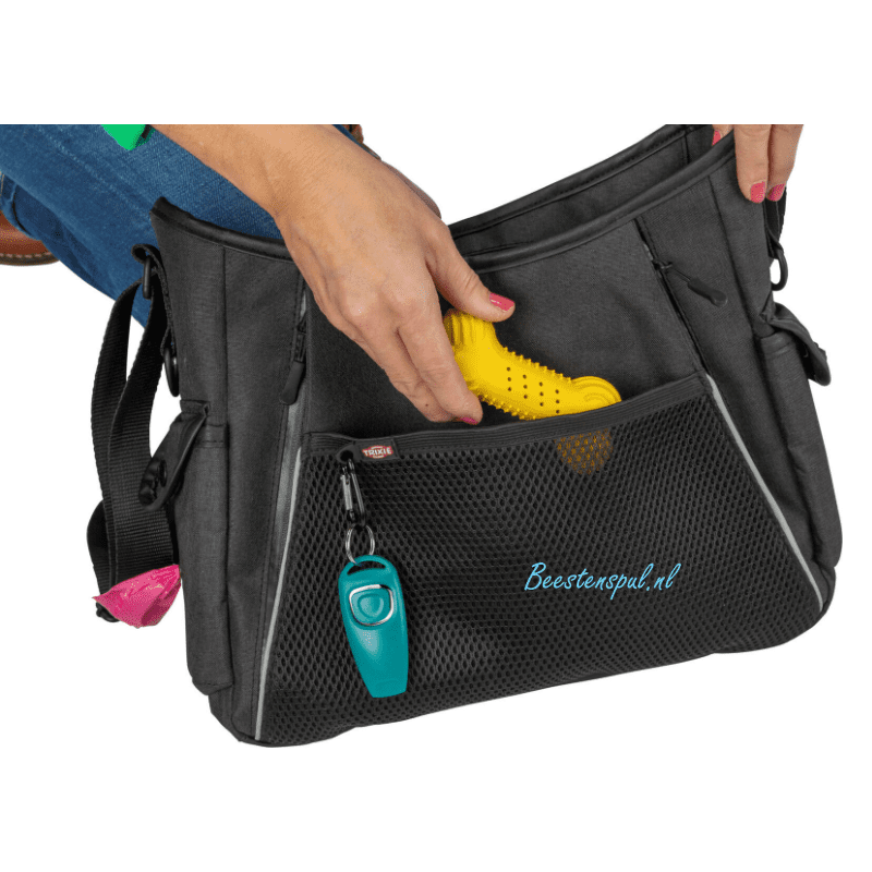 Ook heeft hij een apart vak aan de zijkant, met een opening speciaal voor hondenpoepzakjes.